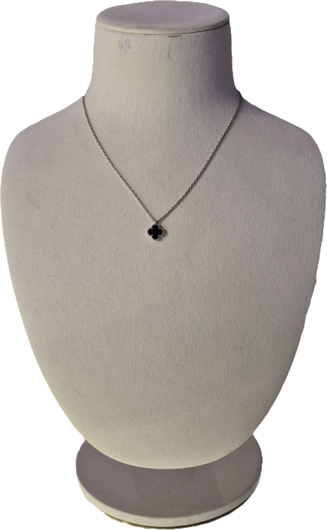 1 Clover Silver Small Black Necklace