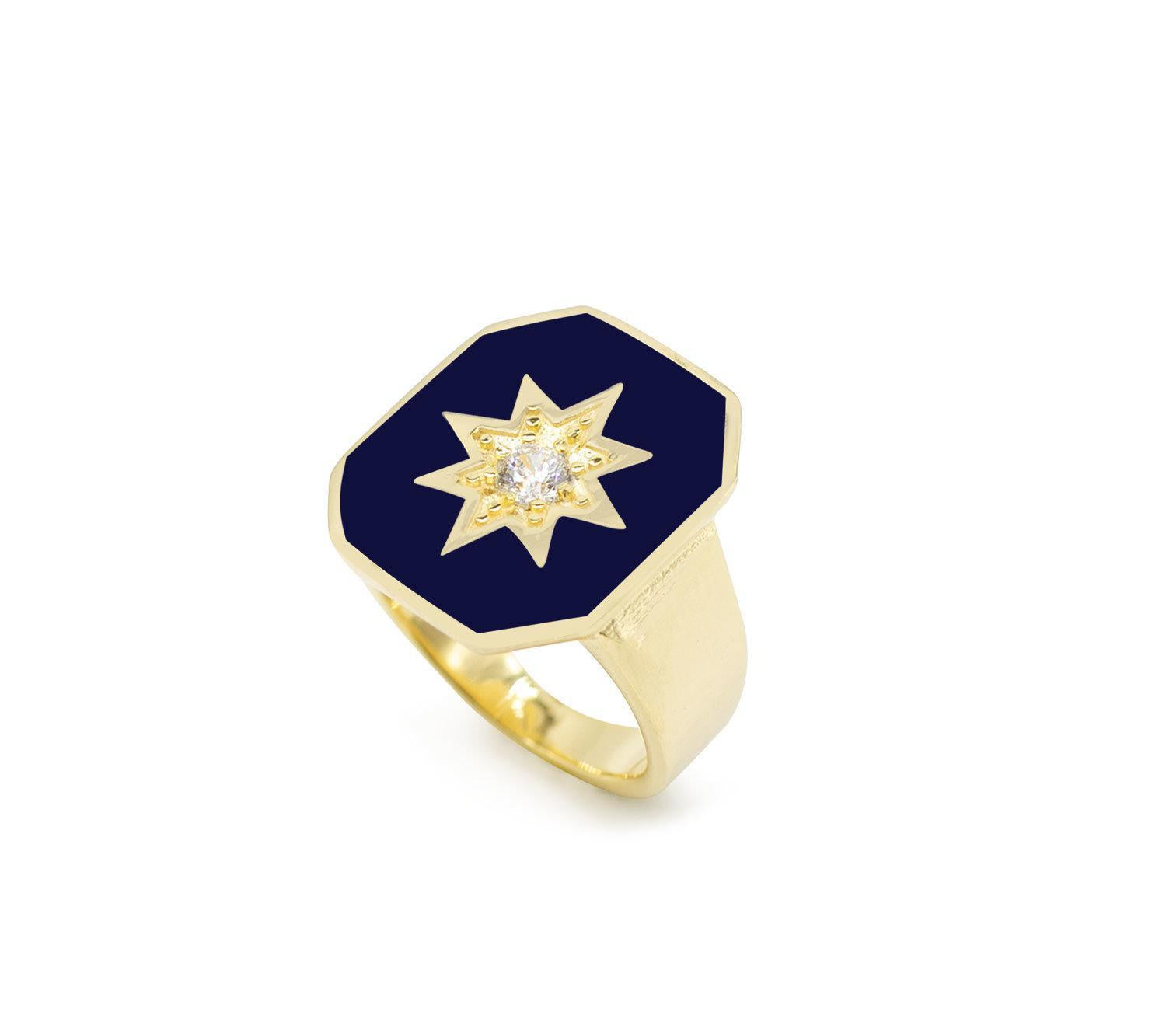 Navy Blue Eneamel Octagonal Ring